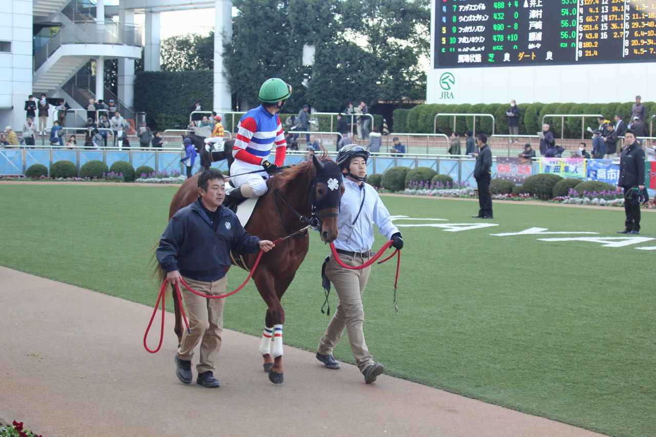 先頭を走る馬を交わしてクビだけ出たところがゴールでした。
