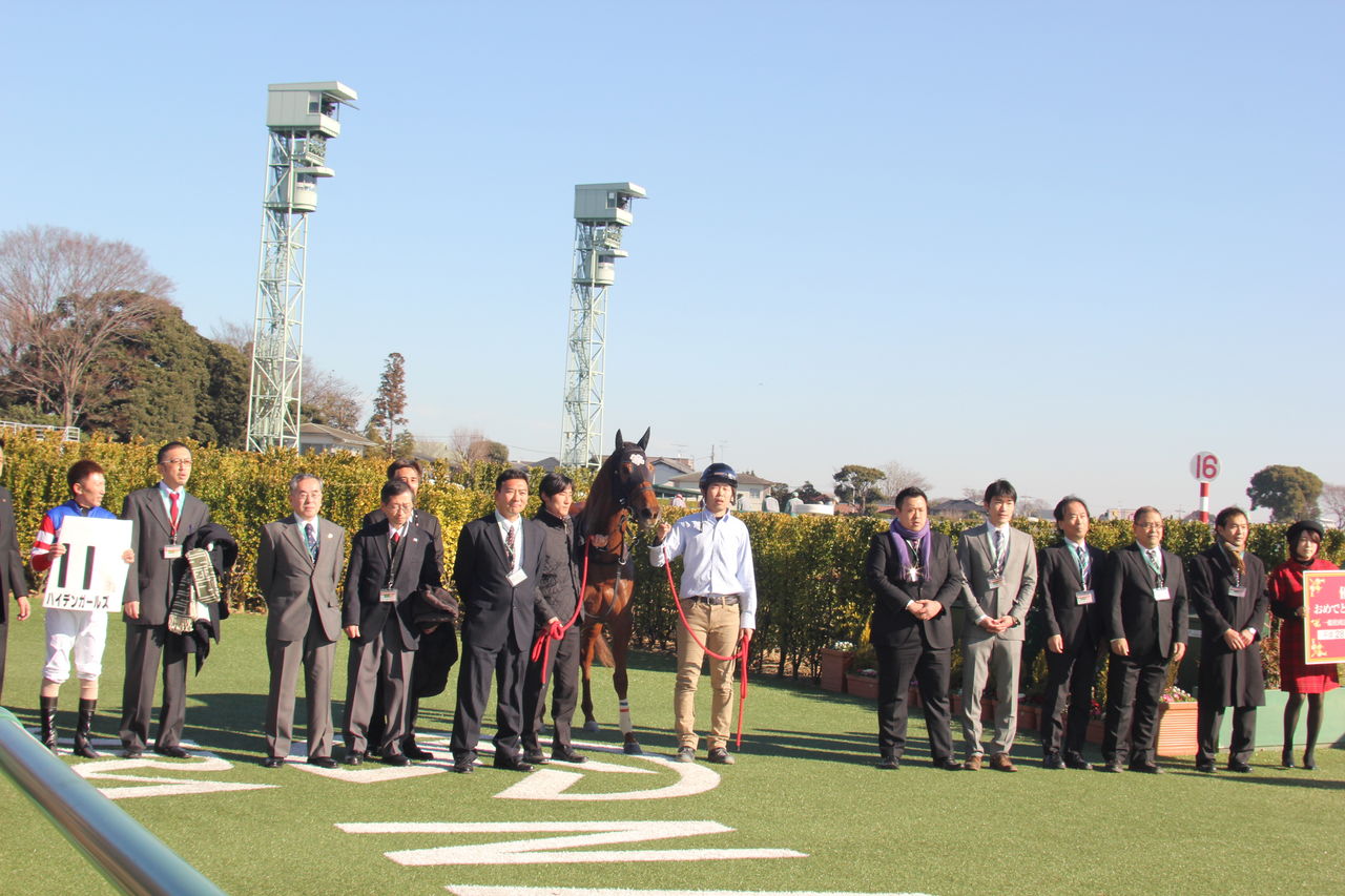 中山の狭いウイナーズサークルで会員10名並ぶと窮屈な形になります。。。